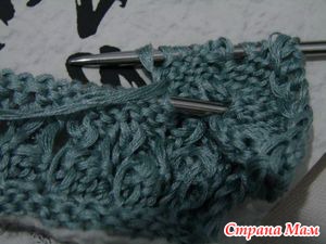 3-й ряд: снова повернуть работу на лицевую сторону и прибавить 4 накида между лицевыми.