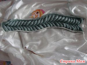 оставшиеся п. на вспом. спицу. Правую часть передней детали вяз. симметрично левой, набрав 6 п. для планки застежки и сн. 34п. со вспом. Спицы.