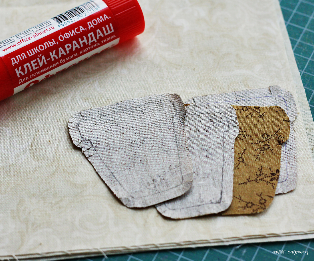 Когда припуски подклеены, даем им время подсухнуть, т.к. если пришивать аппликацию к основе сразу же, сама аппликация деформируется. Поэтому пусть пройдет хотя бы 15-20 минут.