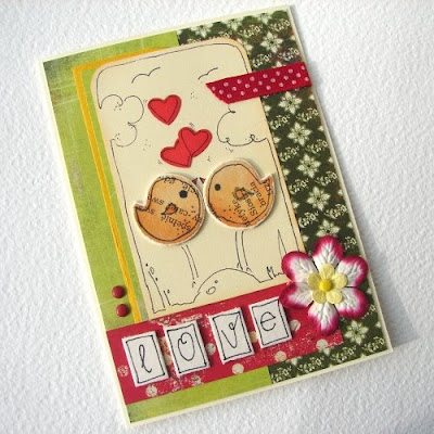 Сделать надо было в весенней палитре. Бумагу сделала в Photoshop, так как подходящей не нашлось. Для розочек, листьев и бабочек использовала компостеры фирмы Dalprint Plus. Также использовала Gloss Gel для росинок на розах и Perlen Pen для жемчужинок в серединах цветов внутри конверта.
