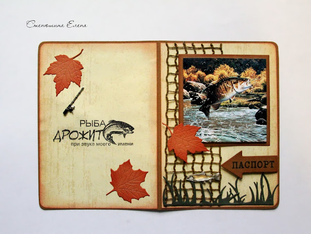 Чтобы хоть немного отвлечься от мыслей о неминуемо приближающейся катастрофе (я имею ввиду паводок на Амуре), я решила сделать обложку на паспорт для мужа. Он давно просил что-нибудь с рыбочкой))). Вот, что получилось:
