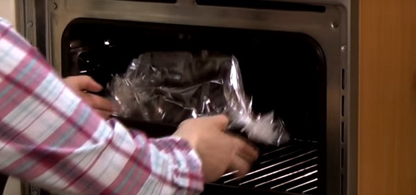 Мясо в рукаве поставь в форму для запекания. Поставь форму в разогретую до 180 градусов духовку и запекай мраморное мясо 1 час.