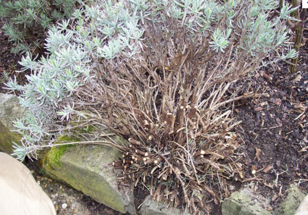 При обрезке старых оголенных кустов лаванды поступают следующим образом: сильно обрезают куст, оставляя 5-10 см над землей, только лишь с одной стороны. Вторую половину куста оставляют необрезанной. Когда в обрезанной части куста появятся и окрепнут новые побеги, можно смело обрезать вторую половину. В этот период растение будет иметь немного причудливый вид, но уже в следующем году никто и не заметит такой неравномерной стрижки.