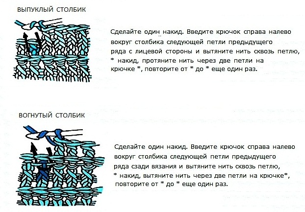 резинка 2х2: (2 выпуклых ст.с накидом и 2 вогнутых ст.с накидом );