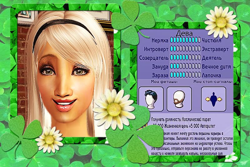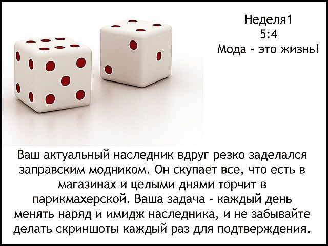 Доброго времени суток. Моё имя – Джозеф Брайтон. Я – последний живой представитель нашего рода. Когда мы с вами виделись в последний раз, я был ещё подростком, окруженным любящими меня людьми. Но через несколько месяцев после нашей последней встречи, произошел несчастный случай – наш дом загорелся. Мои близкие погибли, а я сам попал в больницу, откуда выписался только недавно. В то время, как врачи боролись за мою жизнь, объявилась мать и объявила себя моим законным представителем. Ко времени моей выписки из госпиталя, она оставила от всего огромного состояния нашей семьи 300 долларов на счете и участок на котором когда-то стоял наш дом. Теперь же это пустое поле с единственным деревцем, будто в насмешку уцелевшим во время пожара. Теперь я должен продолжить дело моей семьи и вернуть своему имени былую значимость в этом городе. Хотя, принципы, по которым я собираюсь жить отличаются от тех, что прописала в своем завещании бабушка Кира. “eXtreme” Ваш основатель приобрел огромный участок земли, в надежде, что такое приобретение окупится в будущем. Но в таких условиях задача заложения прочного фундамента для будущей династии будет труднее, чем обычно. - основатель начинает как взрослый, вы не можете начать в колледже - вы начинаете на лоте 5*6 (что сводит ваши начальные средства к 1500) - вы не можете подселять симов в первую неделю - если у вас установлено дополнение "Увлечения" (Free Time), и вы выбираете это ограничение, то вы НЕ можете продавать компьютер, который приносит Mr. Humble, чтобы получить дополнительные деньги “International Turmoil” Дела на международной арене приняли опасный оборот. Популярные места отдыха больше не могут гарантировать безопасность туристов. -у всех симов, которые едут в путешествие, навык тела должен быть прокачан по максимуму – на 10 пунктов “True Love” Ваш основатель верит в теорию родственных душ. Вместо того, чтобы довольствоваться тем, что есть, ваш основатель и все его потомки должны найти идеального партнера прежде, чем заводить детей. - ваш основатель и каждый наследник может иметь детей только с теми симами, с которыми у них химия 3 (3 молнии) - они могут вселять и даже заключать браки с любыми симами, но детей иметь только от того, у которого с ним 3 молнии - если 3 молнии базируются на ситуациях (например, купальники) вы должны иметь 3 молнии только на момент судьбоносного вуху. После этого количество молний может уменьшиться - вы можете пользоваться услугами гадалки для поиска своей второй половинки, если конечно это не запрещено другими ограничениями. - если никак не удается найти возлюбленного с тремя молниями, есть смысл поменять фетиши\стоп-сигналы - если следующее поколение рождено после похищения инопланетянами, это ограничение не нарушено. - наследницы могут иметь детей с симами, созданными игроком, если у них есть 3 молнии и если они не вселяют сима “Patriarchy/Matriarchy” Ваш основатель верит в древние традиции, по которым права на наследование передаются детям определенного пола. Только так семья достигнет почестей и процветания. - только симы с тем же полом, что и основатель, могут стать наследниками - если в семье нет детей одного пола с основателем, вы должны продолжать пытаться, пока они не появятся “Storyteller” - как минимум один роман должен быть написан каждым наследником каждого поколения, исключая 10. Его качество не важно. Вы 
