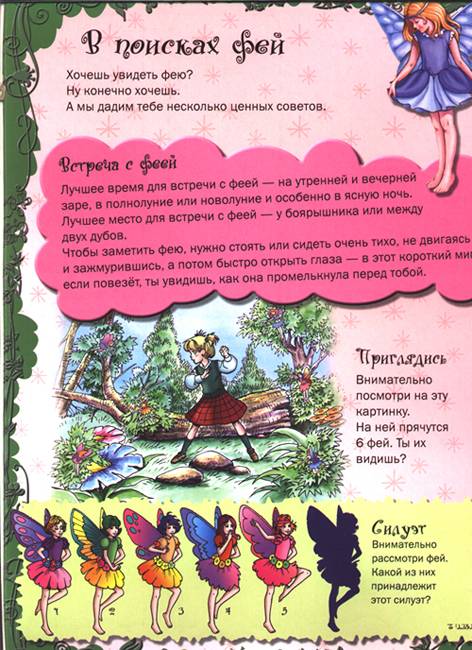 В книжке кроме заготовок для замка и подробного описания, есть различные лабиринты, загадки, викторины, задания и интересная информация о феях, принцессах, волшебниках... в зависимости от того, какую книгу выбрали.
