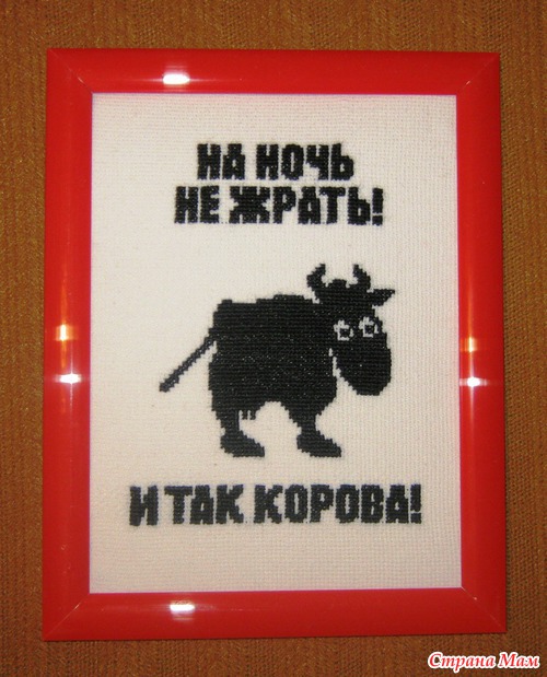 Нашла в Стране Мамочек вот такую картинку.На что наши женщину не идут, ради похудения. Может кто и себе захочет такую вышить, тогда Вам сюда.http://www.stranamam.ru/post/4655659/