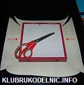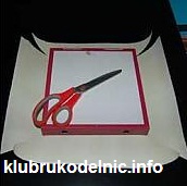 1. По размерам коробки отрезать бумагу, добавив по 10 см с каждой стороны. Крышку кооробки намажем клеем и положим ее на отрезанный кусок бумаги.