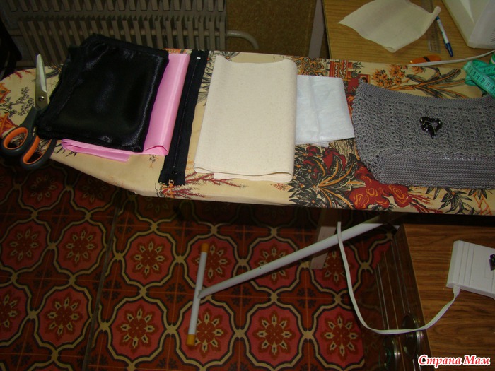мне понадобилось 30 см черного креп-сатина, 30 сантиметров розового подклада, 30 см дублирина, черный замок - 25 см.