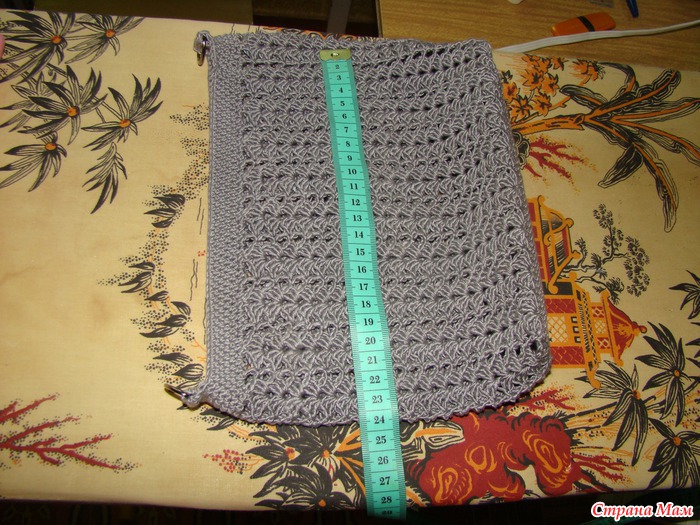 измеряем сумочку от края до середины донышка и от одного бока до другого.