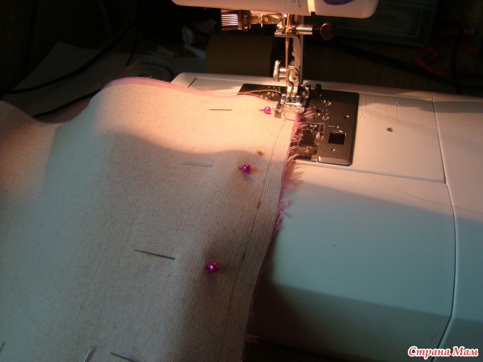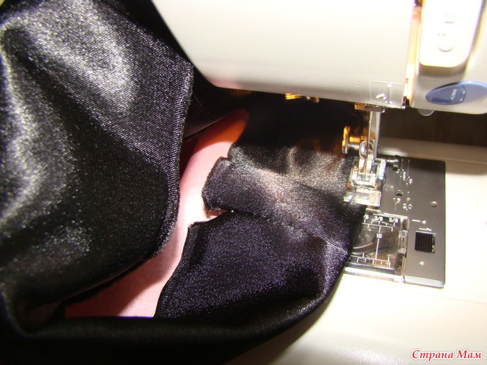 затем припуск который оставался сверху загибаем на подклад и прострачиваем.