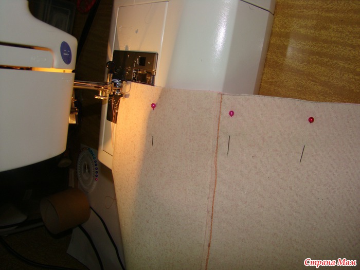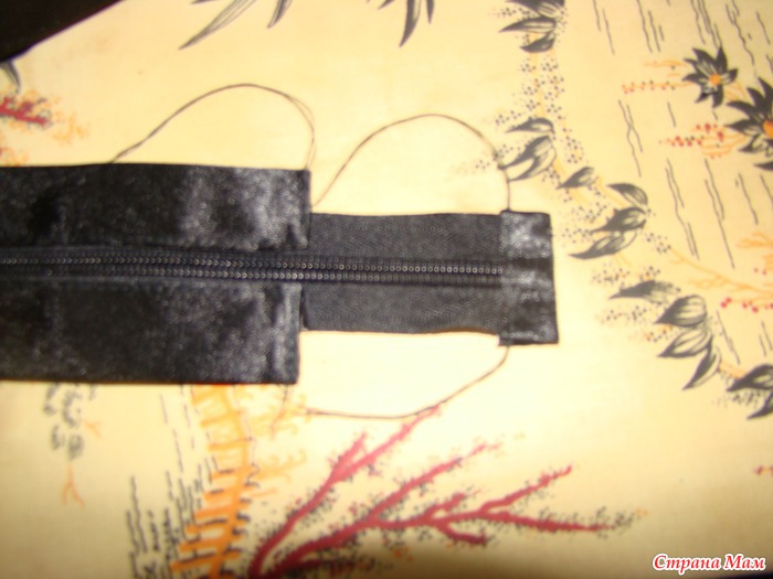 далее прикалываем (приметываем) замок спиралью вверх к нашему подкладу и прострачиваем по нижней кромке.