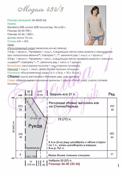 Заканчивая изделие, последний рапорт провязать только на половину (4 ряда).
