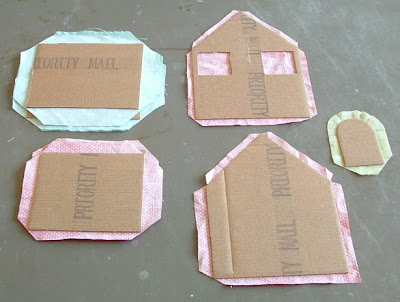 Маленькие домики из картона и ткани. |