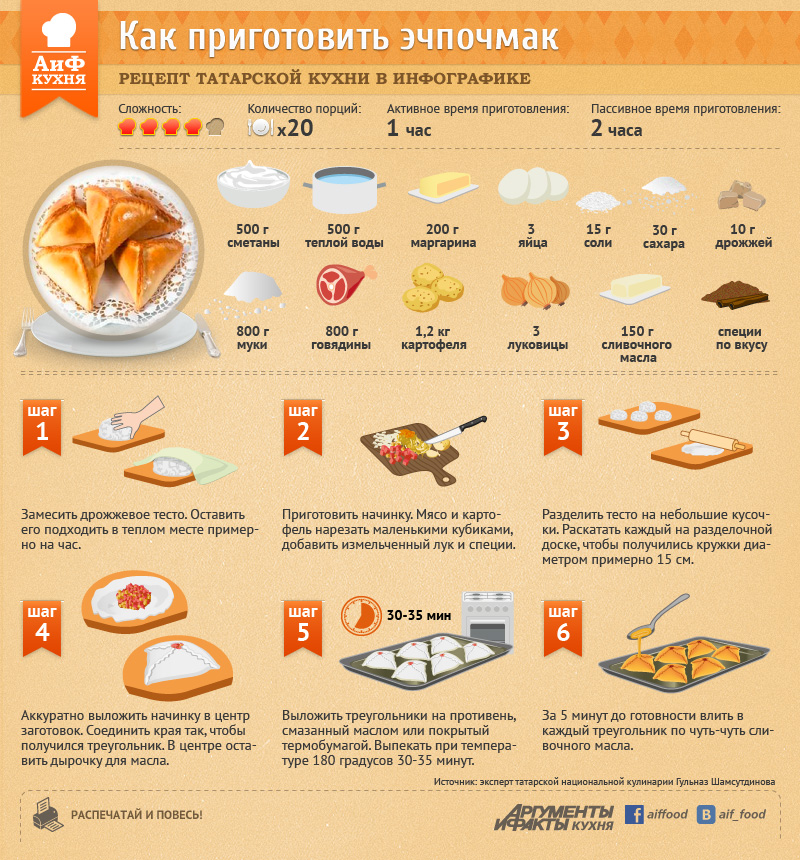 Как приготовить эчпочмак.Рецепт в инфографике |
