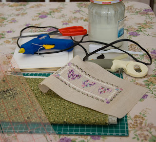 Этот процесс описывать подробно не буду, тут дело вкуса. Отмечу только, что натянутую вышивку я приклеиваю тоже термоклеем, а кружево/шнур/тесьму по краю или ПВА, или супер-моментом (аккуратно). Можно и пришить, как вы привыкли делать. :)