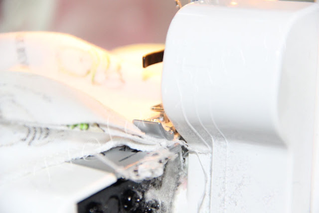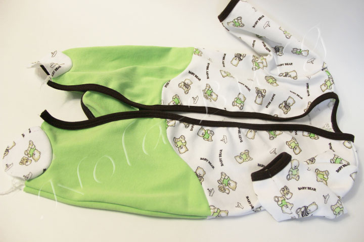 Притачиваю следок на оверлоке. Начинаю перед местом соединения полочек, заканчиваюю после него, т.е. прошиваю по нему два раза. Приклеиваю трансфер, ставлю кнопки.