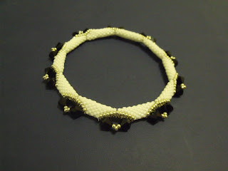 Весь бисер высыпается в одну коробочку и смешивается, а затем набирается на длинную проволоку.