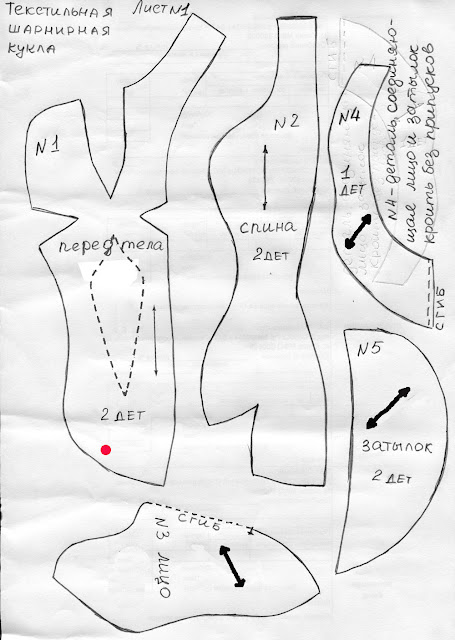 Слева - размеры готовой куклы, справа - размер деталей выкройки в длинну по вертикали