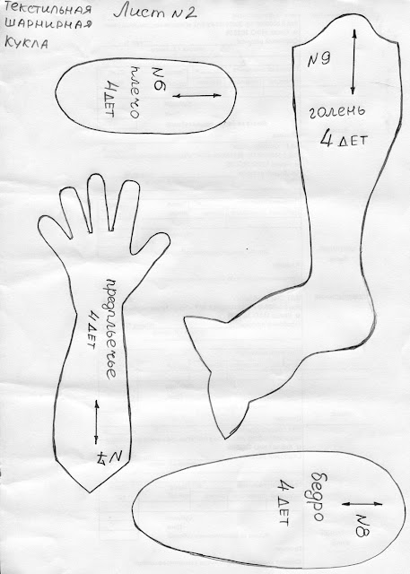 Чертёж № 7 - предплечье и кисть, 4 детали, т.е., эту деталь выкройки нужно обвести два раза, если вы кроите ткань, сложенную вдвое.