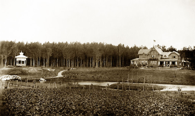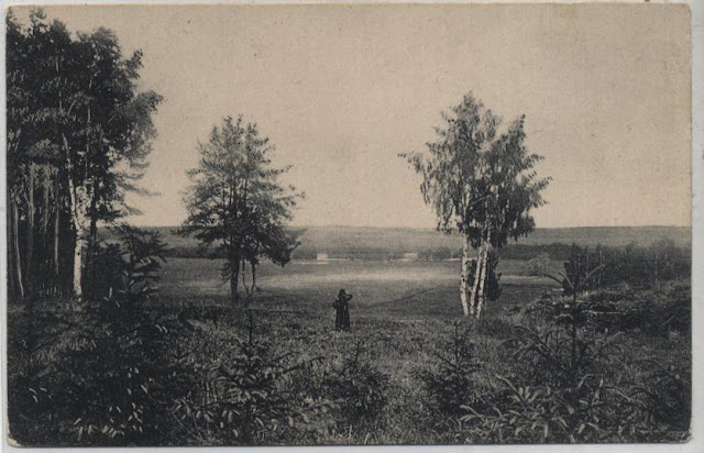 Усадьба Фряново и школа. Открытка рубежа XIX-XXвеков.Здание школы выделено цветом.