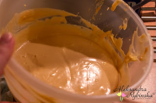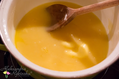 5. Уменьшите высокую температуру до низкой,постоянно перемешивая смесь. Через несколько минут смесь поменяет свой цвет до оранжево-коричневого цвета. Начинается изумительный запах на кухне -как пишет автор рецепта, начинает пахнуть "Марлен" :).