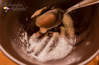 4. В отдельной миске смешать пищевую соду с уксусом, сразу же начинает пениться, так что сразу же добавить его в выше приготовленную массу ещё стоящую на огне.