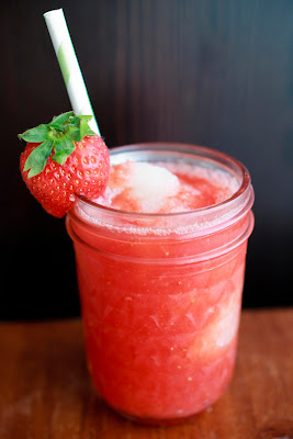 Аналогично поступаем с лимонами, к которым добавляем 1/3 стакана сахара, 3 стакана льда и 1 стакан воды , отправляем все в блендер и взбиваем до однородной массы. Доливаем лимонную смесь к клубничной и сразу подаем к столу :)