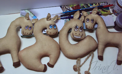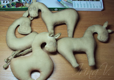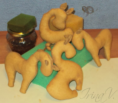 Лошадки окрашены и должны высохнуть, я оставляла сушиться на ночь, можно высушить подвесив в духовке при маленьком огне, минут 5-7.