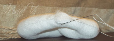 После набивки зашиваем потайным швом, так же пришиваем ушки..