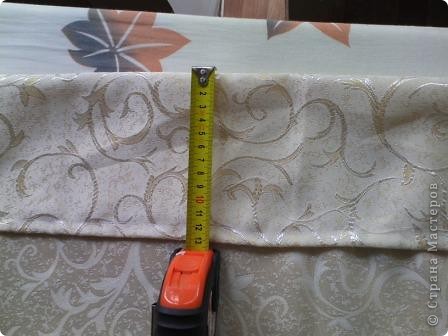 Идем дальше. Сверху, где будут люверсы подгибаем ткань для крепости. Опять же, рекомендуют 13 см (как я сделала и видно на фото). Но в итоге я поняла, чем тоньше и мягче ткань, тем меньше нужно оставлять пространства сверху люверсов (я их крепила по середине) или ставить люверсы ближе к сгибу. У меня осталось около 4см, и из-за того что ткань была мягкой, то верх не очень "стоИт".