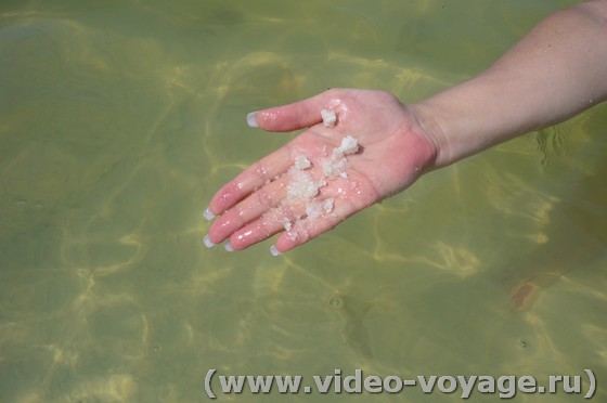 В воздухе витал степной зной, сравнимый чем-то со зноем, что в степях Калмыкии. Озеро оказалось совсем не глубоким, что-то около метра, во всяком случае в том месте, где были мы. Все вокруг искрилось и переливалось . Соляные кристаллы гирляндами играли на солнце. Зайдя в воду и чуть окунувшись, мы поняли, чтобы здесь утонуть - надо сильно постараться, рапа упорно выталкивала тело наружу, что впрочем в последствии стало даже забавлять. Иногда даже казалось, что тело совсем потеряло вес и ты словно космонавт паришь в пространстве, смотришь на Большое Богдо и ощущаешь себя частью мироздания.