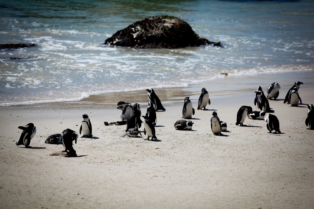 2. Африканские черноногие пингвины на пляже Боулдерс-Бич в Кейптауне. Здесь проживает одна из самых больших колоний пингвинов в Южной Африке. (© Corbis)