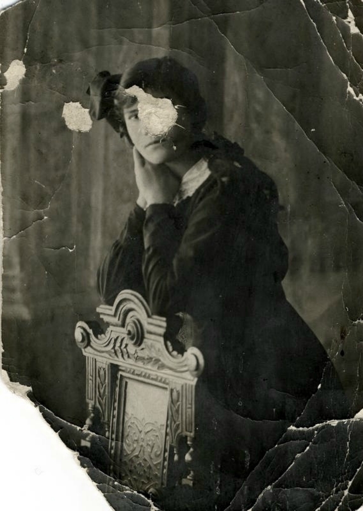 Варвара Распутина. Фото послереволюционное, сохранено подругой. Повреждено умышленно, из опасения репрессий со стороны советской власти.
