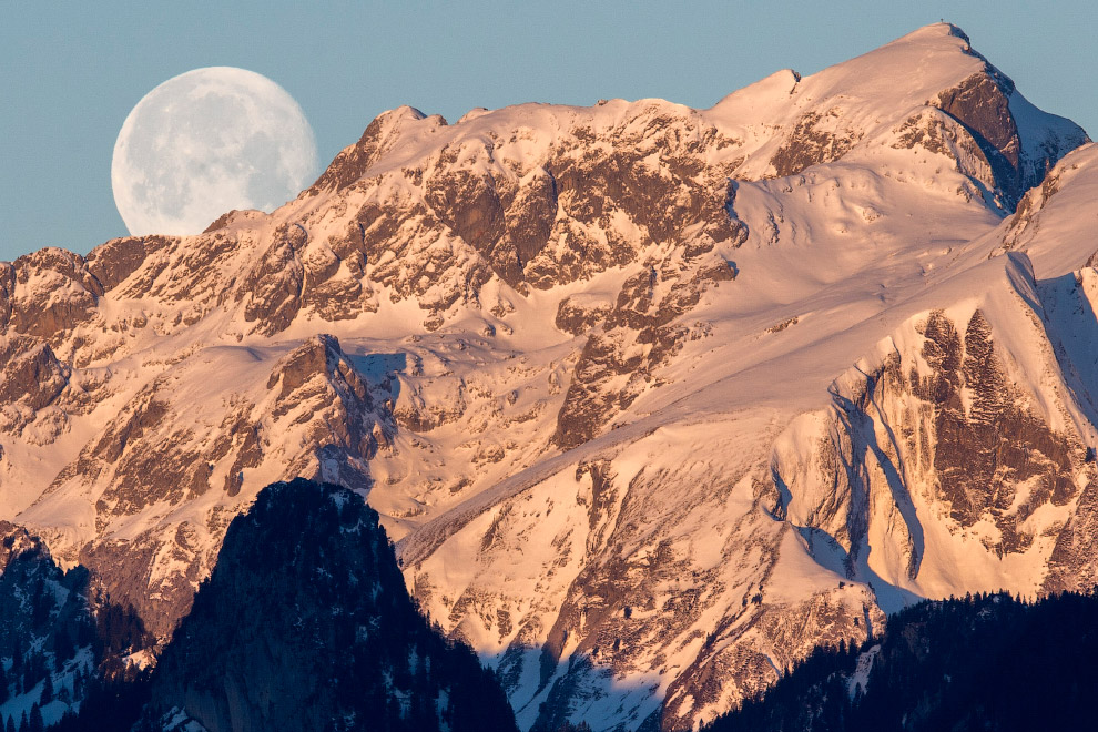 2. Луна над Альпами, Швейцария, 7 января 2015. (Фото Anthony Anex):