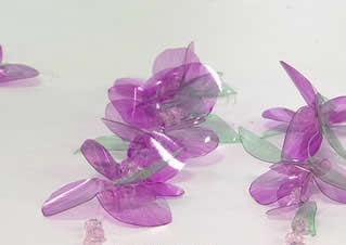 4. После чего вырежьте лепестки из бутылок зеленого и белого цвета.