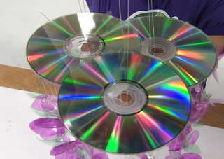 Такой модуль из дисков и пластиковых бутылок вы можете сделать самостоятельно.