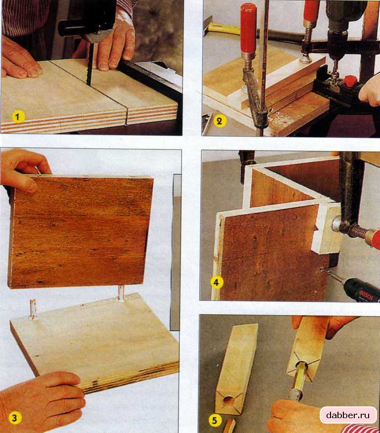 3. Ступеньки полки соединяются с подъемами «в шип». Сегодня существуют всякие разновидности шипов, начиная от металлических и кончая пластиковыми. Можно для работы выбрать любые, в том числе и деревянные. Главное — точно обозначить места сверления, чтобы все детали плотно прилегали друг к другу и не было зазоров.