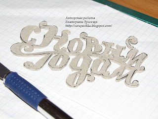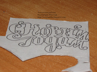 Сначала на картоне рисуем саму надпись.Мы ее действительно не пишем,а рисуем)))