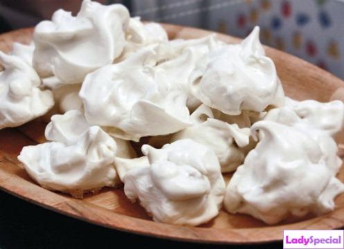 Холодные яйца моете водой, разбиваете и отделяете белки. Взбиваете их в пену, пока они не начнут подниматься, добавляете лимонный сок и сахарную пудру.