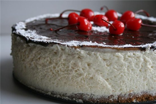 Есть и другой рецепт приготовления этого десерта. Для него вам понадобится соединить коржи, суфле и глазурь воедино.