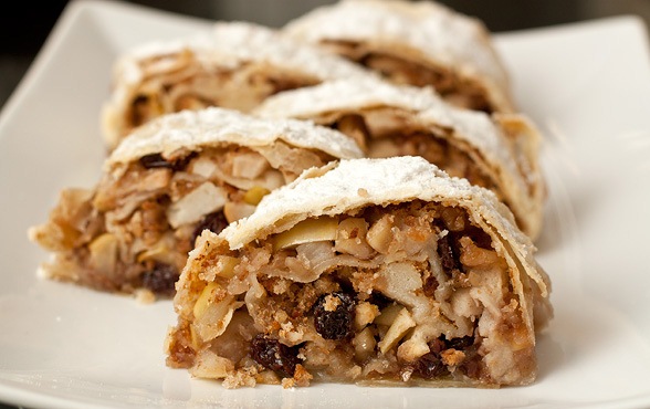 Яблочный штрудель незаметно перебрался к нам из чешской, австрийской и немецкой кухни. В России он стал собранием всех премудростей кулинарии разных стран. У нас его подают и с мороженым, и с ягодным сиропом, и с сахарной пудрой. Чем же привлекателен такой десерт?! Женщины любят его за быстроту приготовления и низкую калорийность, а мужчины - за приятное сочетание яблока и слоеного теста.