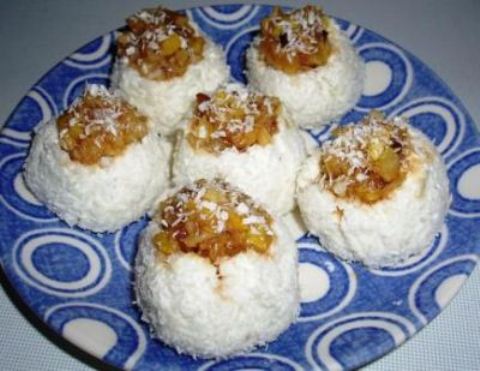 Покупаем два детских творожка без изюма, разминаем их вилкой. Туда добавляем немного сахара, если творог несладкий, и цедру лимона. Катаем шарики одинакового диаметра, в серединку можно положить по одному жареному фундуку. Насыпаем кокосовую стружку на тарелку и обмакиваем там шарики. Сверху можно украсить каким-нибудь вареньем, орешками. И ставим в холодильник на 20 минут. Если нет кокосовой стружки, можно обвалять шарики в тертых вафлях или печенье.