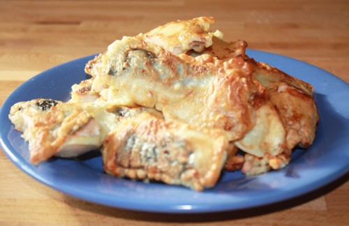 Затем отправляем наше творение в холодильник на 1 час, либо в морозильную камеру на 20 минут. Вынимаем, режем кубиками.
