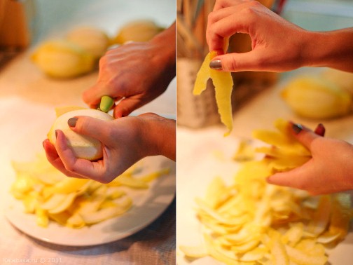 Для этого запасаемся 6 апельсинами, а можно и больше, я думаю, в процессе пару апельсинов уйдут для пробы. Желатин (25-30г) высыпаем сразу в небольшую кастрюльку, можно в железную миску, наливаем стакан холодной кипяченой воды и оставляем на 1 час, желатин должен набухать. Через час крупинки расплывутся, ставим на огонь и греем, постоянно помешивая желатин ложкой, иначе прилипнет ко дну. И главное – не доводить до кипения, если пару крупинок не растворились, просто не выньте их ложкой.