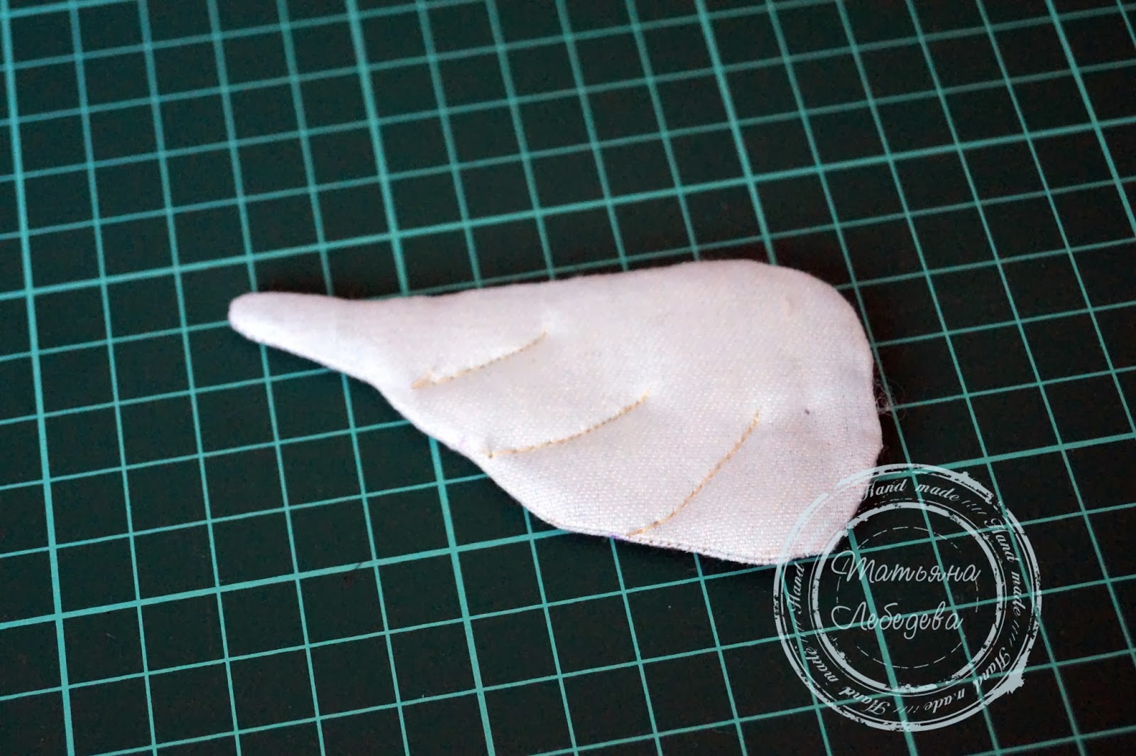 Шью по контуру, контролируя последний стежок перед поворотом. Если поворот будет резким (как на данном участке крыла), строчу до места поворота.