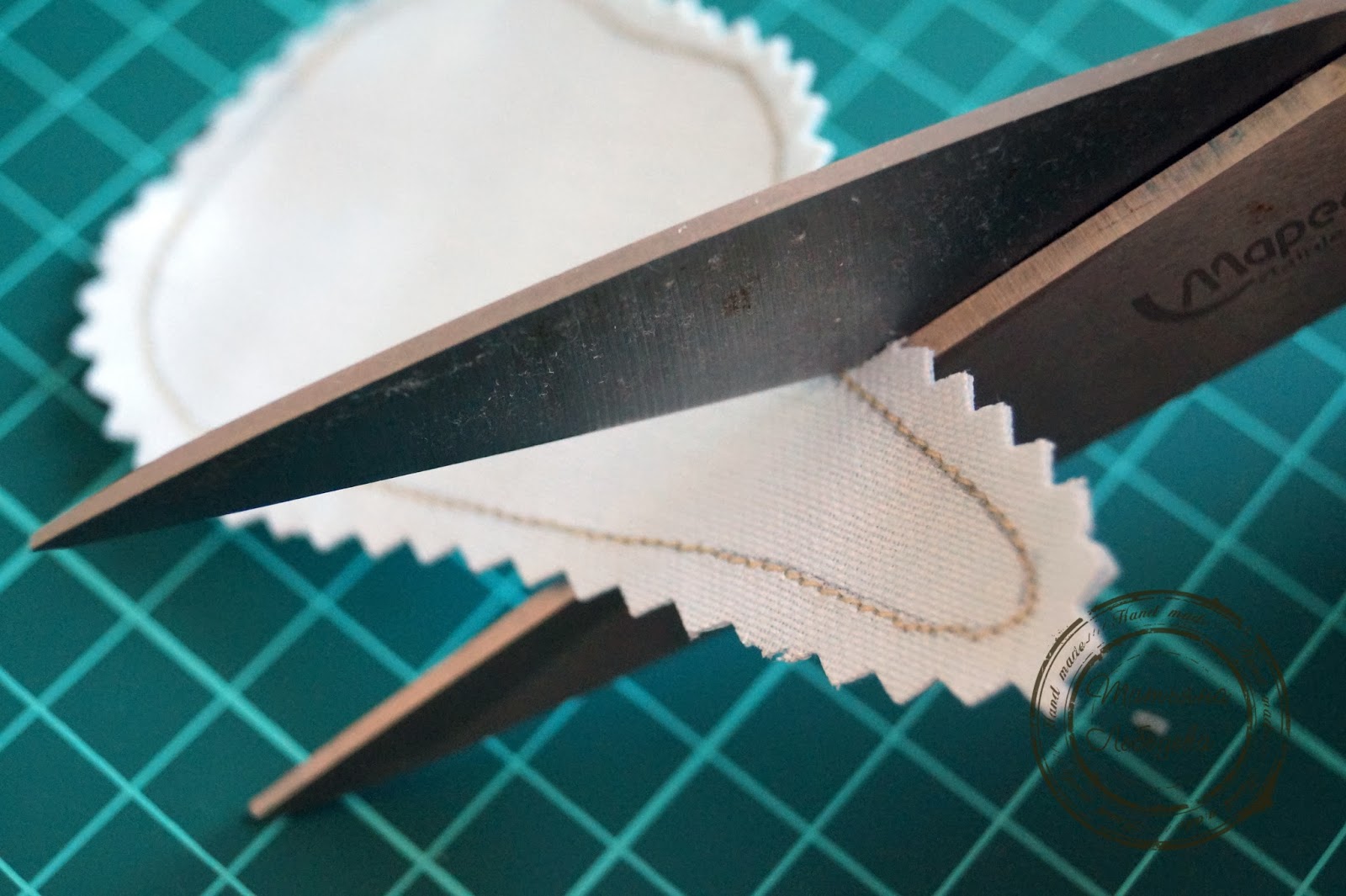 Вырезаю готовые детали зубчатыми ножницами, они позволяют избежать острых углов при выворачивании и помогают максимально избежать осыпания ткани.