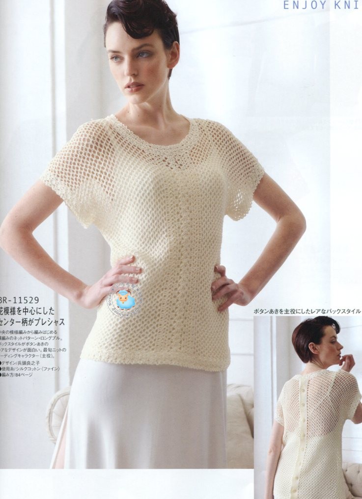 Вязание сверху вниз единым полотном. После разреза для застёжки - по кругу с поворотом. Для начала наберите цепочку из воздушных петель заведомо большей длины. Затем свяжите по схеме 7 первый ряд из 16-ти клиньев. Лишние петли цепочки отрежьте и затяните узелок.