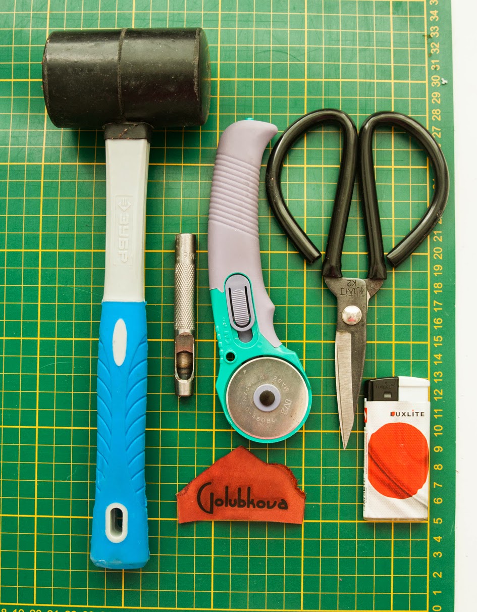 Сначала пробиваем края входа в карман круглым пробойником диаметром 1см. затем вырезаем аккуратно по нижней и верхней линии.