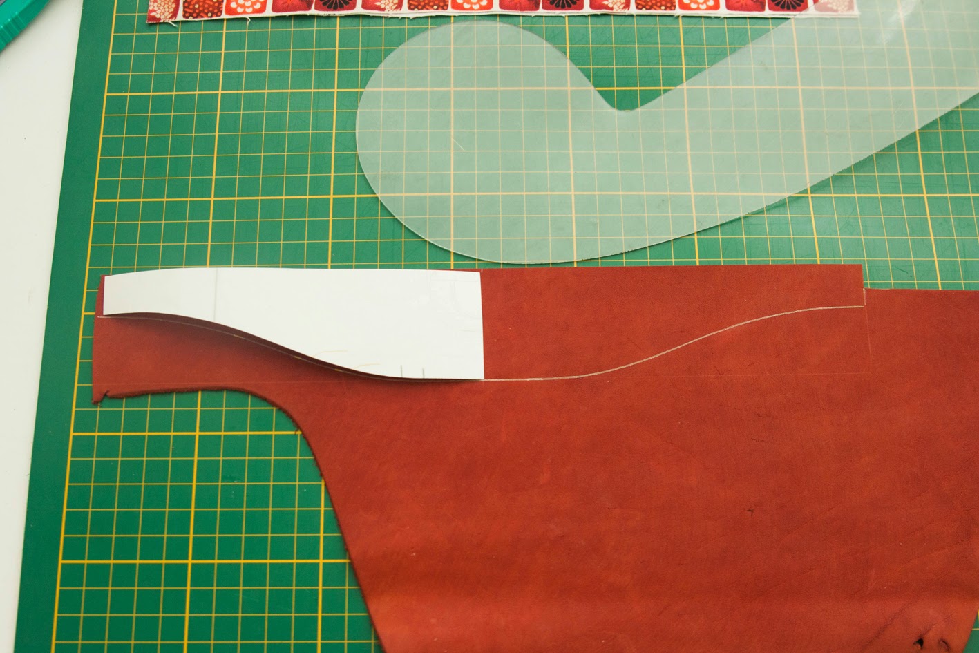 Вырезаю из кожи фигурную накладку которая будет украшать верхний край кармана.